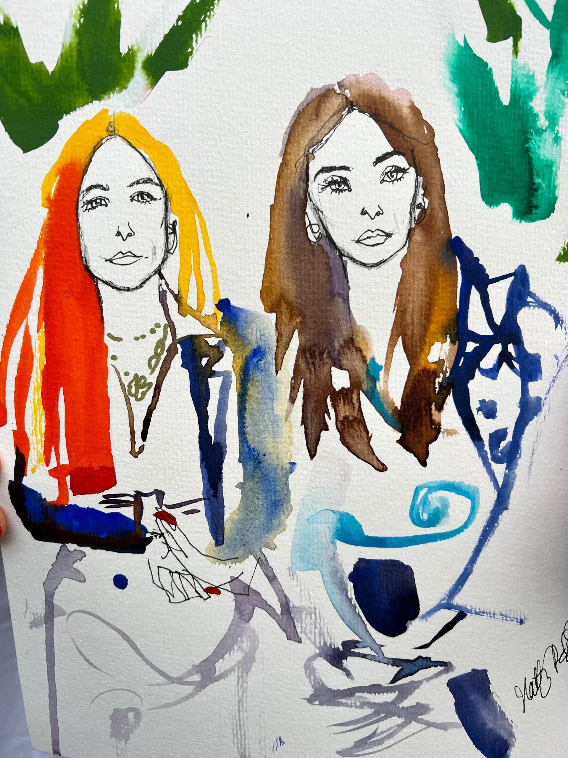 In addition to the main painting, her individual guest portraits (A4\A5) are stylish, minimal portraits done live that guests can take home the same day.